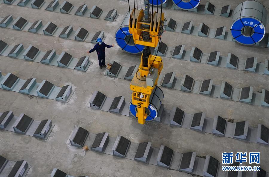 5月22日,工人在遷安市首鋼遷鋼高端汽車板生產(chǎn)車間成品區(qū)工作。近日,首鋼股份公司遷安鋼鐵公司高端汽車板生產(chǎn)線項目在河北省遷安市投產(chǎn)。該項目具有技術(shù)水平領(lǐng)先、操作智能、節(jié)能環(huán)保等優(yōu)勢,酸洗板材年產(chǎn)量達100萬噸,產(chǎn)品主要應用于高端汽車零部件生產(chǎn)及空調(diào)壓縮機用鋼和高強系列用鋼、精沖用鋼等多個領(lǐng)域。新華社記者 楊世堯 攝