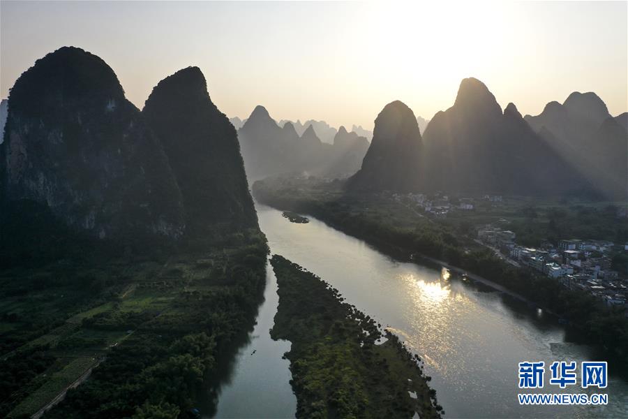 這是在廣西桂林市陽朔縣興坪鎮(zhèn)拍攝的山水風(fēng)光(5月19日攝,無人機照片)。“蒼蒼森八桂,茲地在湘南。江作青羅帶,山如碧玉篸……”一千多年前,唐朝詩人韓愈寫盡桂林山水之美。初夏時節(jié),在廣西桂林市陽朔縣興坪鎮(zhèn),藍天白云下,煙雨朦朧中,桂林山水盡顯秀美。新華社記者 曹祎銘 攝