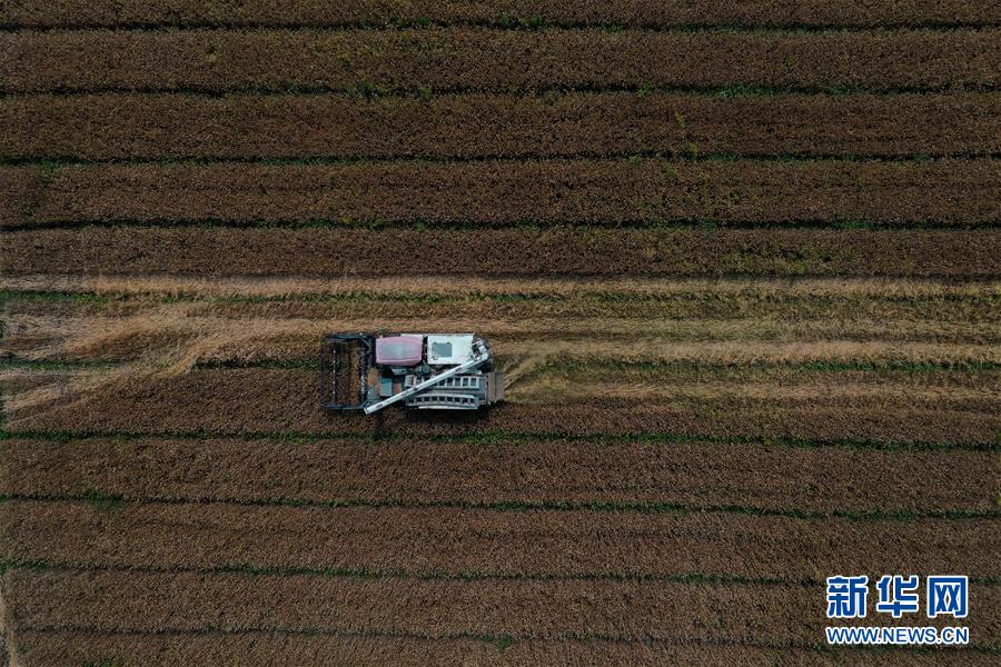 5月24日,農(nóng)戶駕駛收割機(jī)在浙江省湖州市吳興區(qū)八里店鎮(zhèn)尹家圩糧油植保農(nóng)機(jī)專業(yè)合作社的麥田里進(jìn)行收割作業(yè)。新華社記者黃宗治攝