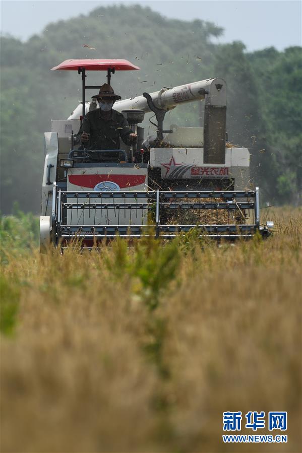 5月24日,農(nóng)戶駕駛收割機在浙江省湖州市吳興區(qū)八里店鎮(zhèn)尹家圩糧油植保農(nóng)機專業(yè)合作社的麥田里進行收割作業(yè)。新華社記者黃宗治攝
