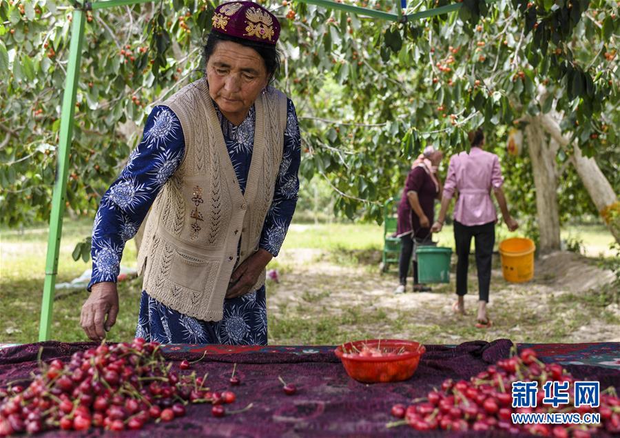 時(shí)至5月下旬,塔克拉瑪干沙漠邊緣的新疆莎車縣米夏鎮(zhèn)數(shù)千畝櫻桃樹碩果累累,吸引游人前來觀光采摘。近年來,深度貧困的南疆四地州將特色林果業(yè)與旅游業(yè)相結(jié)合,助力百姓脫貧增收。新華社記者王菲攝