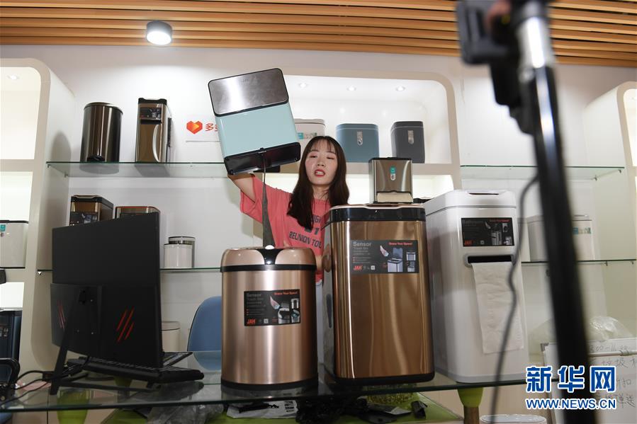 5月25日,在浙江省臺(tái)州市黃巖區(qū),一家塑料制品生產(chǎn)企業(yè)的工作人員在直播銷售智能垃圾桶。近年來,浙江省臺(tái)州市黃巖區(qū)的家居塑料制品生產(chǎn)企業(yè)加強(qiáng)與國內(nèi)電商平臺(tái)的對(duì)接,大力開拓線上市場(chǎng),根據(jù)線上市場(chǎng)反饋,提升產(chǎn)品研發(fā)針對(duì)性,創(chuàng)新產(chǎn)品類型,為企業(yè)轉(zhuǎn)型升級(jí)注入活力。新華社記者翁忻旸攝