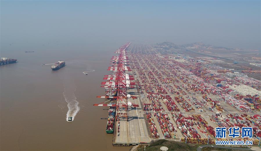 這是3月18日拍攝的上海洋山港集裝箱碼頭(無人機(jī)照片)。新華社記者丁汀攝