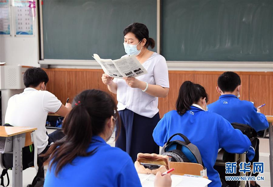 5月28日,北京市第十八中學(xué)的初三年級學(xué)生在上課。北京市第十八中學(xué)共有初三年級學(xué)生340余名,學(xué)校在做好初三年級學(xué)生中考文化課備考的同時,加強(qiáng)學(xué)生心理及身體素質(zhì)的鍛煉,以最好的精神狀態(tài)備戰(zhàn)中考。據(jù)悉,2020年北京中考報名人數(shù)為7.5萬人,比去年增加25%。新華社記者任超攝
