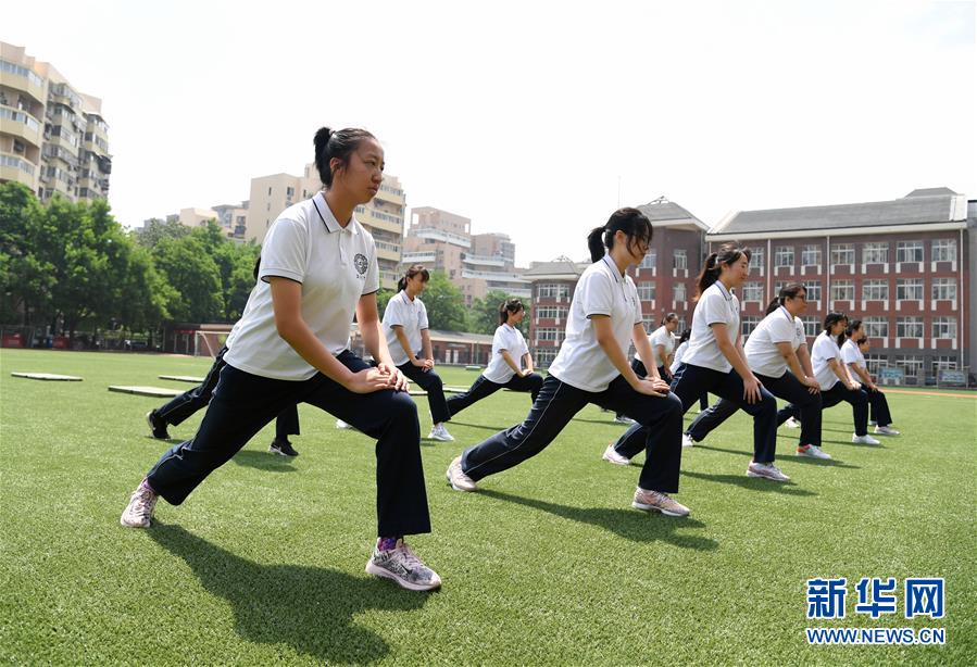 5月28日,北京市第十八中學(xué)初三年級的學(xué)生在體育課上做準(zhǔn)備活動。北京市第十八中學(xué)共有初三年級學(xué)生340余名,學(xué)校在做好初三年級學(xué)生中考文化課備考的同時,加強學(xué)生心理及身體素質(zhì)的鍛煉,以最好的精神狀態(tài)備戰(zhàn)中考。據(jù)悉,2020年北京中考報名人數(shù)為7.5萬人,比去年增加25%。新華社記者任超攝