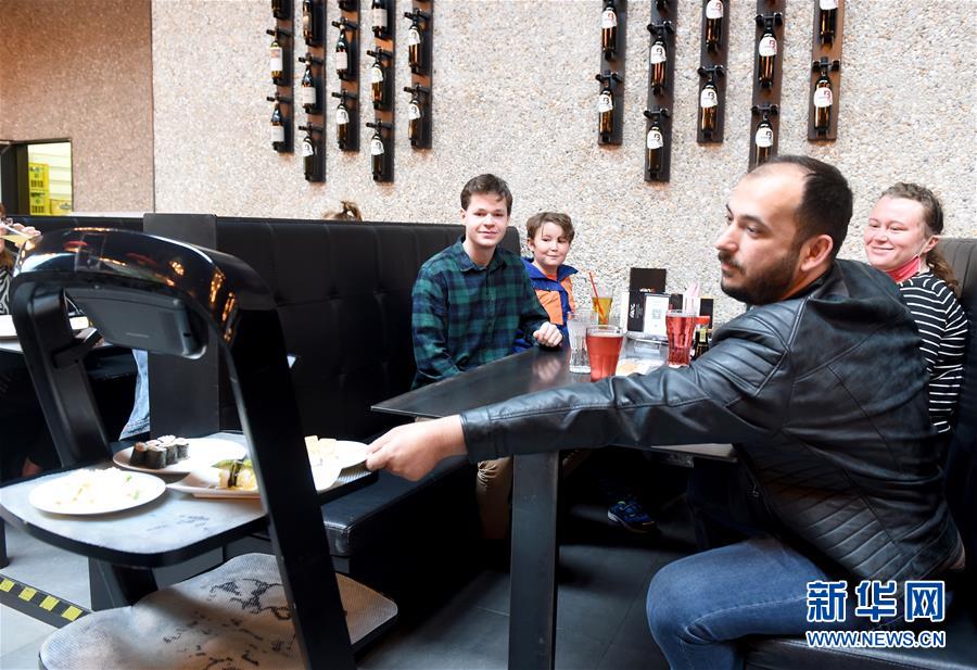 5月28日,在奧地利維也納一家亞洲餐廳內(nèi),機(jī)器人給顧客上菜。維也納的一家亞洲餐廳于疫情期間重新營(yíng)業(yè)后,更多利用機(jī)器人上菜,以減少服務(wù)員和顧客之間的非必要接觸。新華社記者郭晨攝