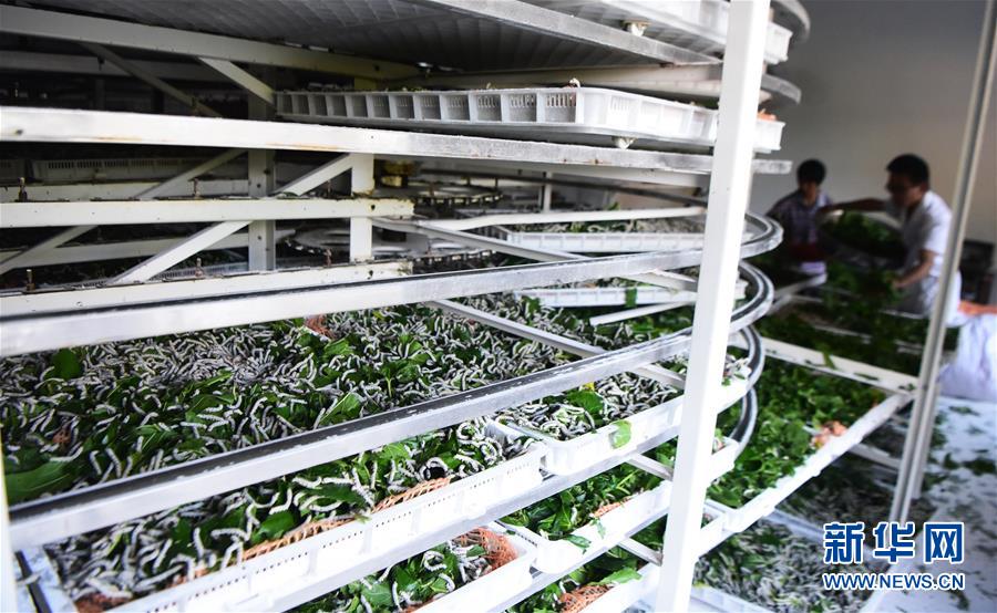5月29日,奉節(jié)縣新民鎮(zhèn)中嶺村蠶桑產業(yè)扶貧基地工作人員在智能化小蠶共育室內作業(yè)。新華社記者 王全超 攝