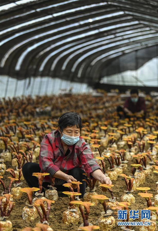 5月30日,在山東省棗莊市嶧城區(qū)峨山鎮(zhèn)食用菌培植扶貧基地,工人在進行靈芝種植管理。為了幫助貧困戶穩(wěn)定脫貧,山東省棗莊市嶧城區(qū)峨山鎮(zhèn)采取“公司+基地+農(nóng)戶”的經(jīng)營模式,建立食用菌培植扶貧基地,發(fā)展食用菌種植產(chǎn)業(yè),惠及160余名貧困戶。目前,基地已集菌種試驗、培育、生產(chǎn)、銷售于一體,年銷售菌棒500多萬袋,生產(chǎn)各類鮮菇1200余噸。新華社記者 范長國 攝