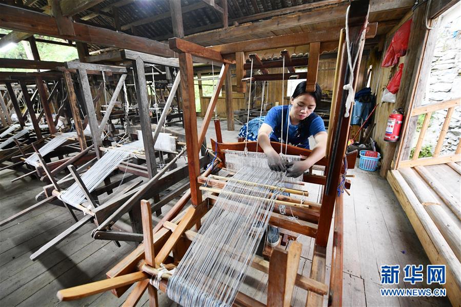 2018年,楊成蘭在村里成立傳統(tǒng)織染合作社,吸引村里及周邊村寨貧困戶入股,帶動當?shù)刎毨艉痛迕窦尤牒献魃?,從事織布、染布、藍靛種植等產(chǎn)業(yè),在傳承民族傳統(tǒng)手工技藝的同時,幫助村民脫貧增收。新華社記者楊文斌攝