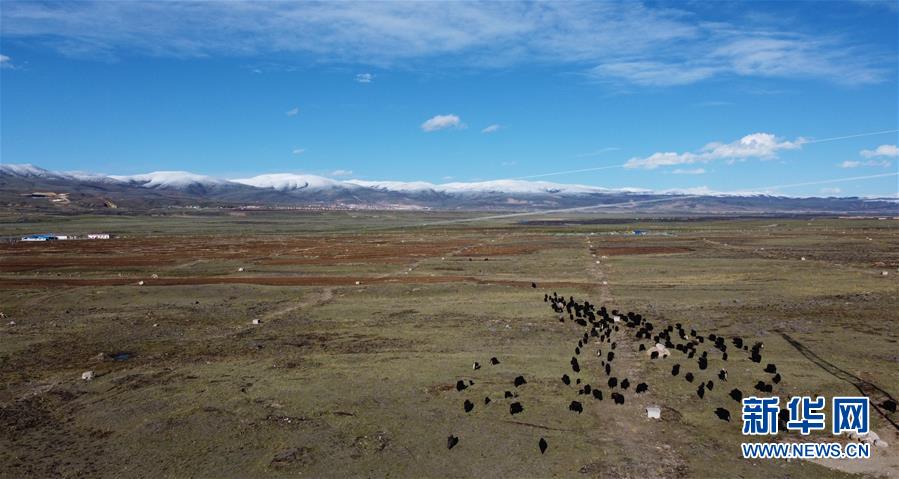 這是5月29日拍攝的四川省甘孜藏族自治州理塘縣奔戈鄉(xiāng)卡灰村一景(無人機(jī)照片)。四川省甘孜藏族自治州理塘縣地處青藏高原東部,縣城海拔約4000米,有“天空之城”的美譽(yù)。時(shí)值初夏,理塘的天空碧藍(lán)如洗,巍峨的雪山環(huán)繞四周,牦牛星星點(diǎn)點(diǎn)散落于曠野之上,構(gòu)成一幅高原特有的壯美圖景。新華社記者李夢馨攝