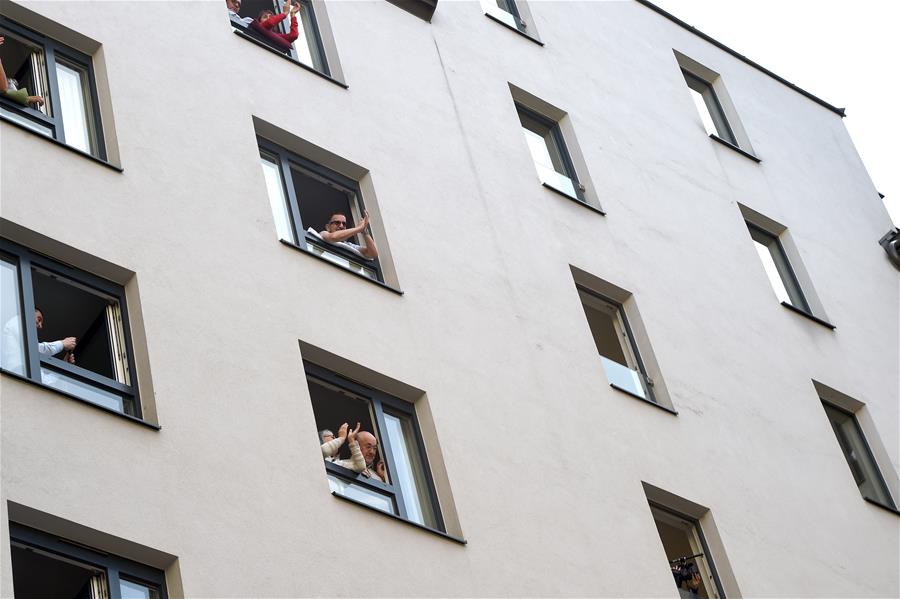 5月30日,在奧地利維也納“時代精神”酒店內(nèi),人們在房間窗口欣賞歌劇演出。當日,奧地利首都維也納的一家名為“時代精神”的酒店為迎接“解封”后恢復營業(yè),在其庭院內(nèi)舉辦“窗口音樂會”。按照奧政府此前公布的“解封”時間表,從29日起,賓館酒店以及健身房、游泳池和游樂場等休閑娛樂場所有條件恢復運營。新華社記者郭晨攝