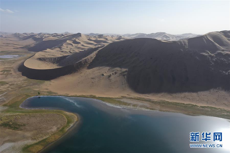 這是5月29日拍攝的巴丹吉林沙漠香根吉林湖(無人機照片)。新華社記者徐欽攝。