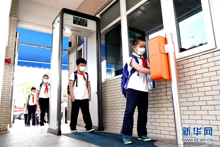 6月2日,上海閔行區(qū)鑫都小學(xué)的學(xué)生走進校園。當(dāng)日,上海小學(xué)一、二、三年級學(xué)生返校開學(xué)。新華社記者張建松攝。