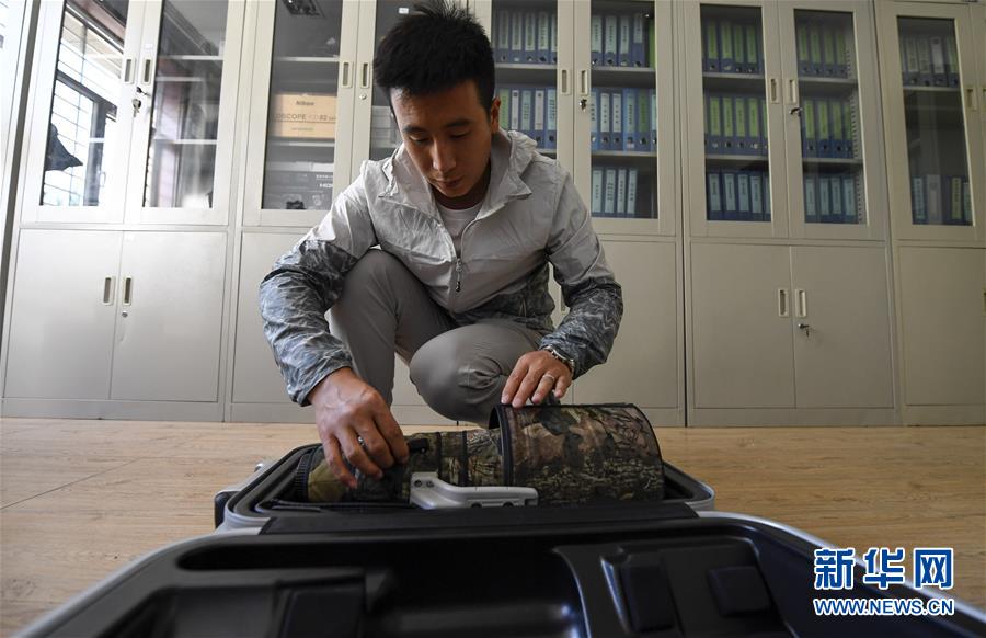 6月3日,李學(xué)明在整理設(shè)備,準(zhǔn)備開始當(dāng)天的巡護監(jiān)測工作。新華社記者馮開華攝。