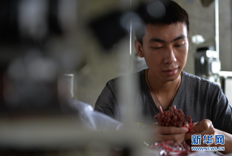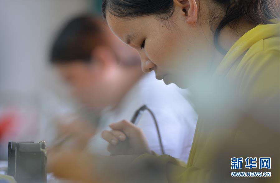 6月4日,一名工人在永州市新田縣一處易地搬遷集中安置點的扶貧車間里加工電器零部件。新華社記者趙眾志攝。