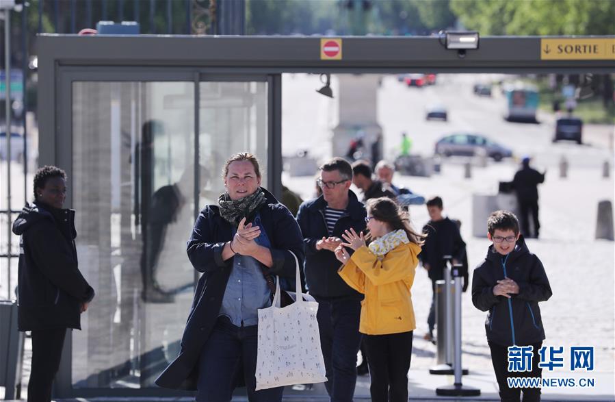 6月6日,在法國(guó)巴黎近郊的凡爾賽宮入口處,游客用景點(diǎn)提供的消毒免洗洗手液洗手。 新華社記者 高靜 攝