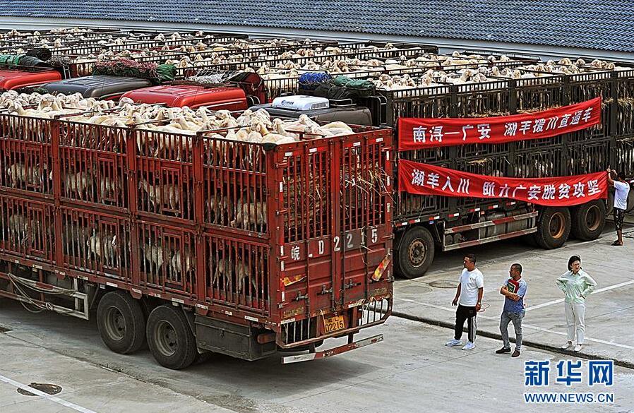 6月7日,裝運湖羊的貨車準(zhǔn)備發(fā)車。當(dāng)日,浙江省湖州市南潯區(qū)湖羊養(yǎng)殖場飼養(yǎng)的五千余頭湖羊啟程運往該區(qū)對口幫扶的四川省廣安市廣安區(qū)。2018年以來,南潯區(qū)依托湖羊養(yǎng)殖產(chǎn)業(yè)優(yōu)勢,積極實施“湖羊入川”和“湖羊致富”工程,向?qū)趲头龅貐^(qū)提供優(yōu)質(zhì)湖羊種羊和湖羊養(yǎng)殖技術(shù)指導(dǎo)。截至目前,南潯區(qū)已向廣安等地提供1.2萬余頭扶貧湖羊。新華社記者譚進攝