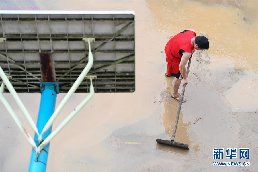 6月8日,在永州市江華瑤族自治縣白芒營(yíng)鎮(zhèn)車(chē)下完全小學(xué),工作人員在校園里清淤。受近日持續(xù)強(qiáng)降雨影響,湖南省永州市江華瑤族自治縣發(fā)生洪澇災(zāi)害。6月8日,永州市江華瑤族自治縣白芒營(yíng)鎮(zhèn)車(chē)下完全小學(xué)開(kāi)展清淤、消毒工作,為6月9日恢復(fù)上課做準(zhǔn)備。新華社記者陳澤國(guó)攝