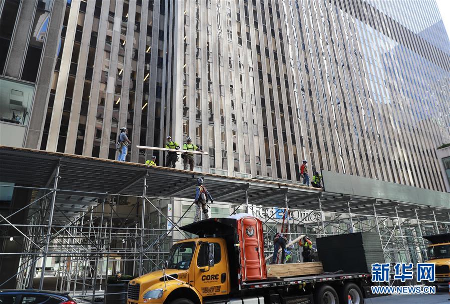 6月8日,工人在美國紐約的一處工地忙碌。在因新冠疫情進入“居家令”近三個月之后,美國紐約市于當?shù)貢r間8日開始“解封”,進入經(jīng)濟重啟的第一階段。新華社記者王迎攝