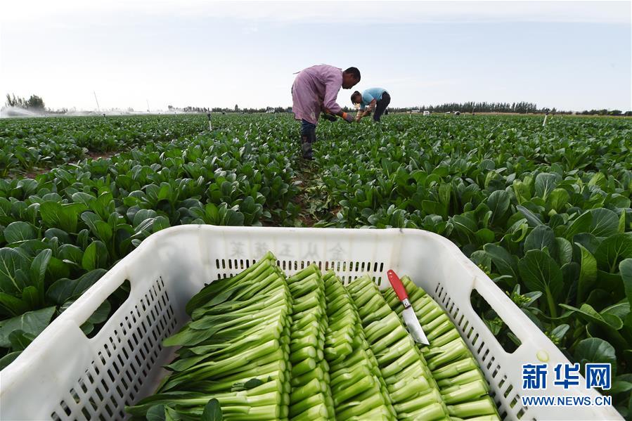 6月8日,粵港澳大灣區(qū)“菜籃子”(金昌)生產(chǎn)基地工作人員在采摘蔬菜。盛夏漸近,位于甘肅省金昌市金川區(qū)的粵港澳大灣區(qū)“菜籃子”(金昌)生產(chǎn)基地的多種蔬菜陸續(xù)豐收。該基地種植面積達1.3萬多畝,采用高效噴灌、精量播種等技術(shù),以及“企業(yè)+合作社+基地+農(nóng)戶”的模式,通過輪作倒茬、循環(huán)供應的方式,每年可種植蔬菜3至4茬,畝均產(chǎn)量2000公斤左右,總產(chǎn)值達1.5億元。新華社記者范培珅攝