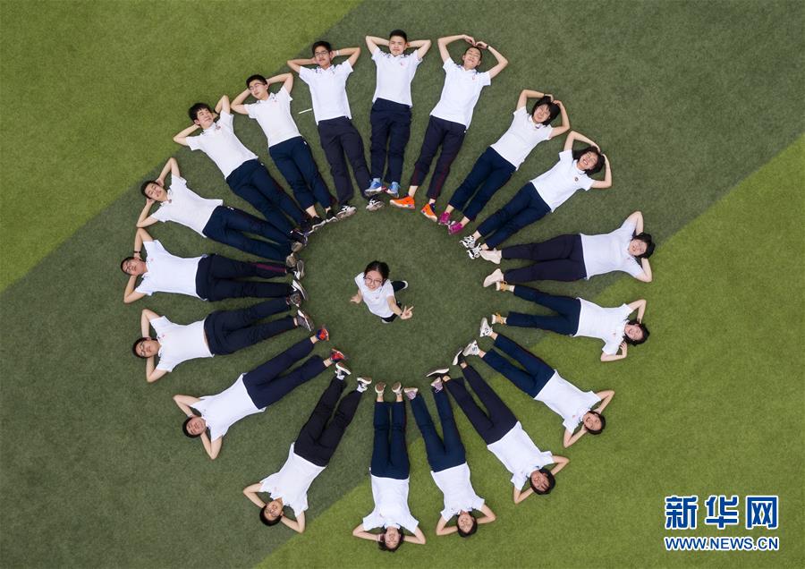 6月9日,河北省衡水市第二中學(xué)的高三學(xué)生在操場上參加減壓趣味游戲(無人機(jī)照片)。2020年高考臨近,河北省衡水市第二中學(xué)組織開展多種形式的集體“減壓”活動(dòng),幫助高三學(xué)生在緊張備考之余釋放身心壓力,以輕松、樂觀、自信的心態(tài)迎接高考。新華社記者朱旭東攝