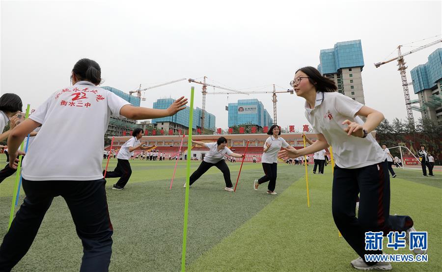 6月9日,河北省衡水市第二中學(xué)的高三學(xué)生在操場上參加減壓趣味游戲。2020年高考臨近,河北省衡水市第二中學(xué)組織開展多種形式的集體“減壓”活動(dòng),幫助高三學(xué)生在緊張備考之余釋放身心壓力,以輕松、樂觀、自信的心態(tài)迎接高考。新華社記者朱旭東攝