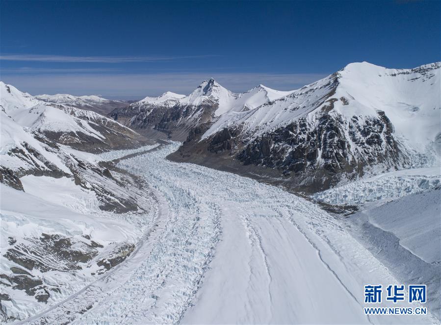 這是珠峰腳下的絨布冰川(無人機(jī)照片,4月30日攝)。從空中俯瞰珠穆朗瑪峰北坡,生機(jī)勃勃的高原濕地、蜿蜒曲折的盤山公路、壯麗秀美的絨布冰川,還有安靜的村莊和熱鬧的登山營(yíng)地,共同構(gòu)成一幅壯美畫卷。新華社記者普布扎西攝