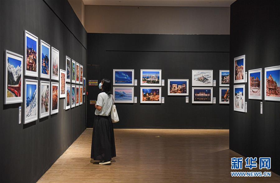 6月13日,觀眾在位于海口的海南省博物館觀看“地球諧音——世界文化遺產攝影藝術展”。新華社記者蒲曉旭攝。