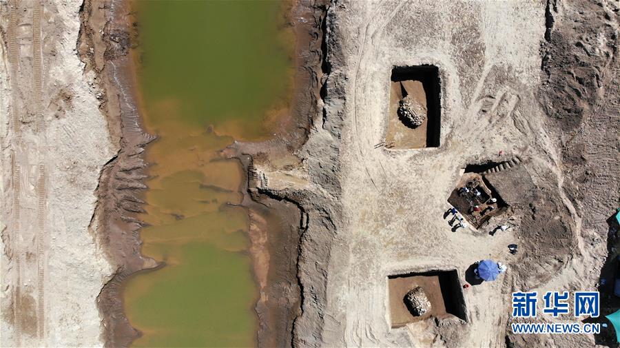 這是6月14日拍攝的山東小清河章丘段考古發(fā)掘現(xiàn)場(無人機照片)。近日,濟南市考古研究所考古工作隊在對小清河章丘段進行考古調(diào)查和勘探時,發(fā)現(xiàn)了13座年代集中在北朝末期至唐朝初期的古墓。新華社記者 王凱 攝