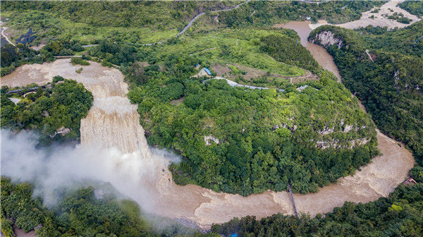 2019年6月12日,貴州省安順市黃果樹瀑布景區(qū)。(無人機航拍)
