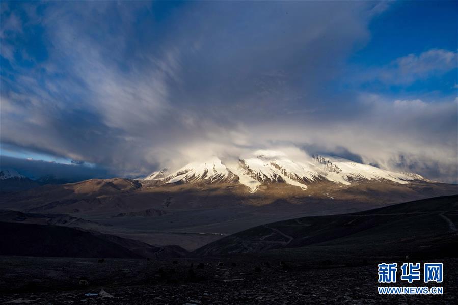 帕米爾高原上,夕陽下的慕士塔格峰(6月15日攝)。新華社記者 胡虎虎 攝