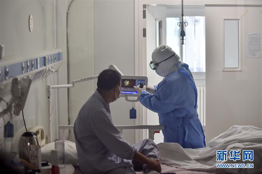 6月16日,在北京地壇醫(yī)院隔離病房內,護士幫助患者調整電視。新華社記者 彭子洋 攝