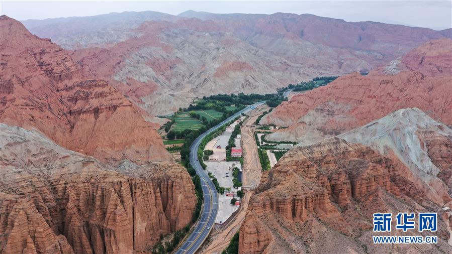 這是6月16日拍攝的位于貴德縣尕讓鄉(xiāng)松巴村附近的丹霞地貌(無(wú)人機(jī)照片)。夏日時(shí)節(jié),位于青海省海南藏族自治州的貴德縣迎來(lái)連日降雨,多彩的丹霞地貌在雨后色澤愈發(fā)鮮艷,在云霧的籠罩下形成一幅幅獨(dú)特畫卷。新華社記者 吳剛 攝