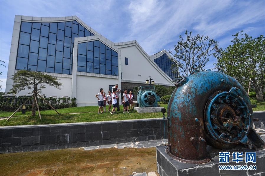 6月17日,洛舍鎮(zhèn)中心學(xué)校的學(xué)生們?cè)诼犓轲^的水利專家講解軸流泵等水利設(shè)備。新華社記者 徐昱 攝