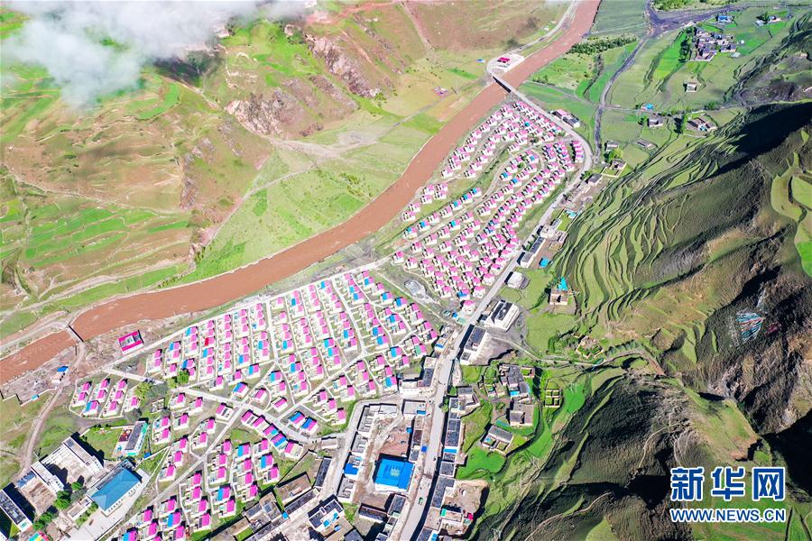 國(guó)道317線旁的一處易地扶貧搬遷點(diǎn)(6月14日攝,無(wú)人機(jī)照片)。新華社記者 田金文 攝
