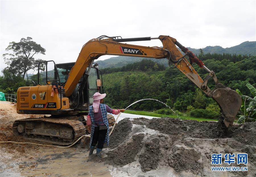 6月17日,百坭村一名工人在攪拌泥漿。新華社記者 陸波岸 攝