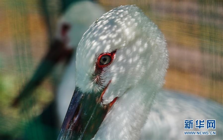 6月17日,東方白鸛在籠中等待放飛。新華社記者 周密 攝