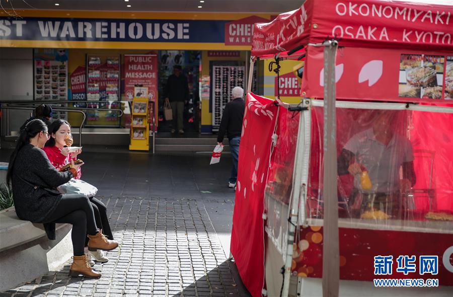 6月19日,人們在澳大利亞悉尼查茨伍德鎮(zhèn)的食品攤位旁用餐。新華社記者白雪飛攝