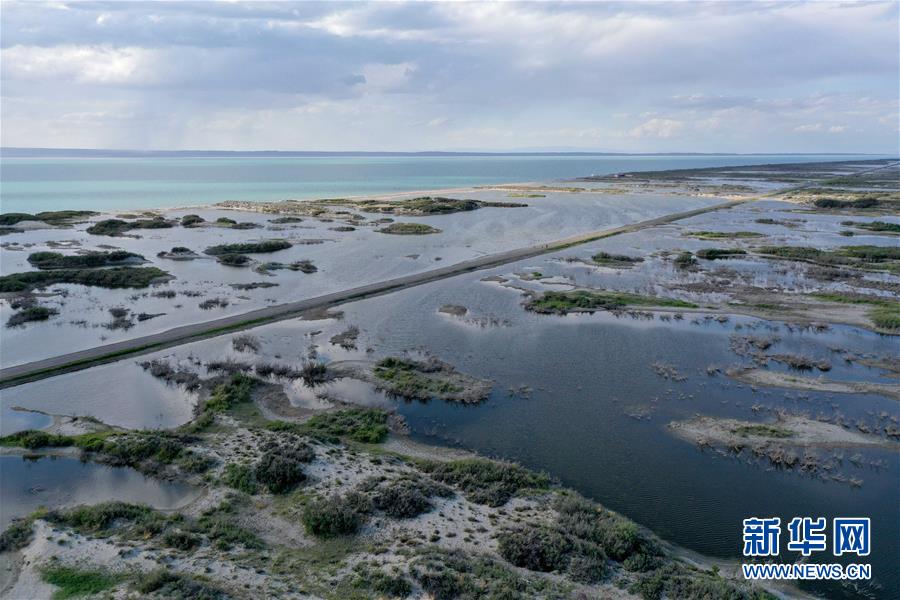 6月18日拍攝的新疆烏倫古湖國(guó)家濕地公園(無(wú)人機(jī)照片)。烏倫古湖國(guó)家濕地公園位于新疆阿勒泰地區(qū)福海縣城以西,由烏倫古湖和吉力湖兩部分組成。烏倫古湖濕地公園是遷徙候鳥飛越天山和阿爾泰山的“能量補(bǔ)充站”,良好的濕地生態(tài)吸引著大量遷徙鳥類在此集結(jié)成群,繁殖棲息,成為一道靚麗的風(fēng)景線。新華社記者 沙達(dá)提 攝