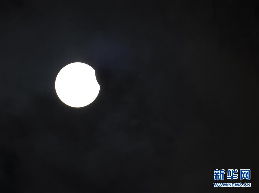 在拉薩觀賞到的日食(6月21日攝)。“日環(huán)食”天文景觀于6月21日“夏至日”下午在天宇上演。新華社記者 普布扎西 攝