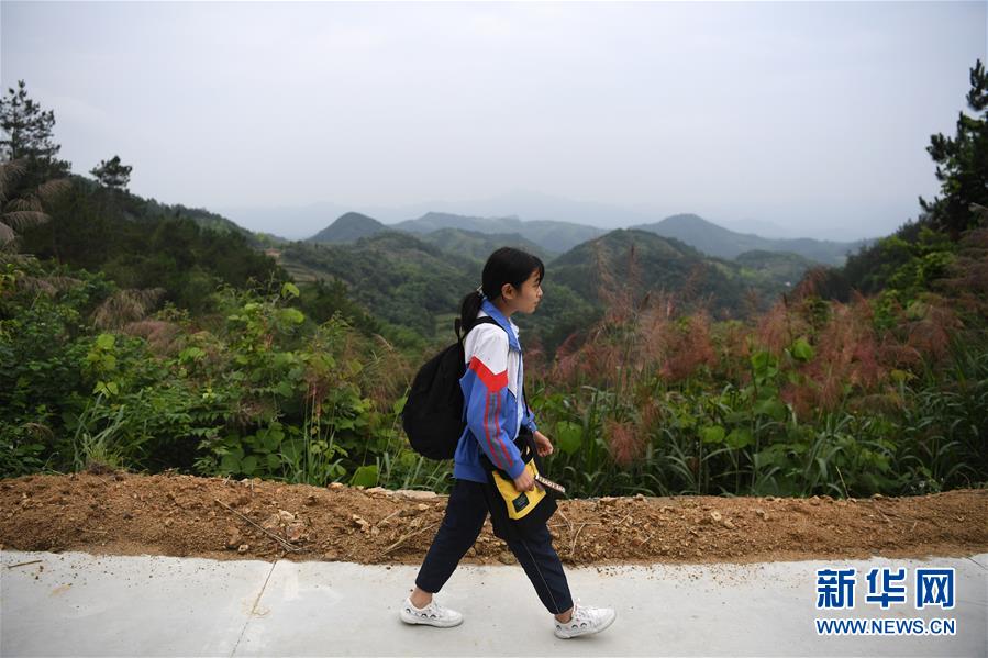 6月19日,蔡齊艷放學(xué)后步行回家過周末。新華社記者劉軍喜攝