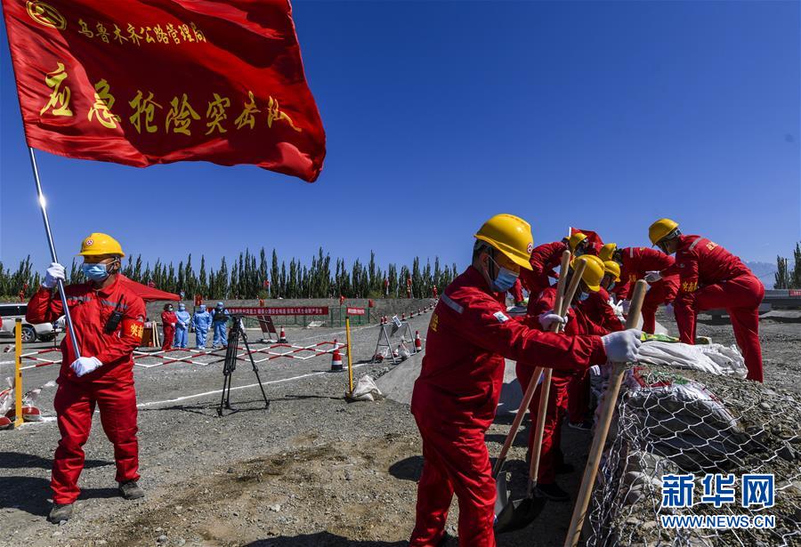 6月22日,應(yīng)急搶險(xiǎn)隊(duì)員參加演練。當(dāng)日,新疆維吾爾自治區(qū)公路管理局組織的2020年國(guó)省干線公路突發(fā)地質(zhì)災(zāi)害應(yīng)急演練在烏魯木齊舉行,演練模擬烏魯木齊市柴窩堡區(qū)域遭受強(qiáng)降雨,誘發(fā)附近水域突發(fā)洪水,公路路基面臨被洪水沖毀的險(xiǎn)情,組織搶險(xiǎn)人員和機(jī)械設(shè)備在指定時(shí)間內(nèi)趕赴受災(zāi)現(xiàn)場(chǎng)實(shí)施應(yīng)急搶險(xiǎn)處置。此次演練將進(jìn)一步增強(qiáng)各相關(guān)部門(mén)的防災(zāi)減災(zāi)意識(shí),提高公路應(yīng)急搶險(xiǎn)處突能力。新華社記者王菲攝
