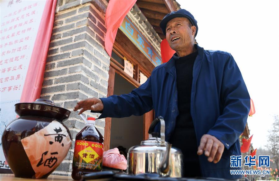 甘肅省平涼市涇川縣涇明鄉(xiāng)白家村村民白貴元在自家黃酒鋪前張羅生意(3月19日攝)。新華社記者陳斌攝