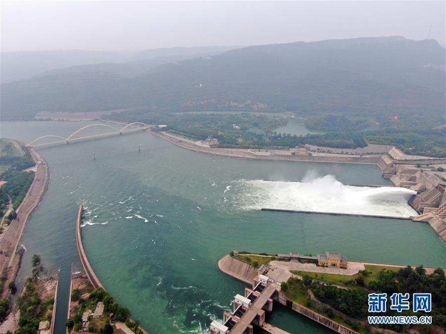 這是6月23日拍攝的黃河小浪底水利樞紐工程(無人機照片)。近日,黃河小浪底水利樞紐工程開啟洪水調(diào)度運用模式,從空中俯瞰,蔚為壯觀。新華社記者馮大鵬攝