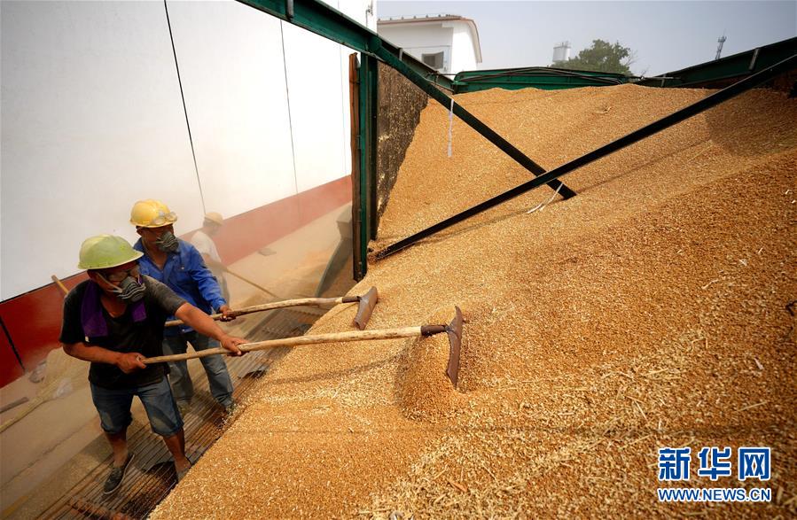 6月23日,在河北柏鄉(xiāng)國(guó)家糧食儲(chǔ)備庫(kù),工作人員在查看小麥質(zhì)量。麥?zhǔn)者^(guò)后,河北柏鄉(xiāng)國(guó)家糧食儲(chǔ)備庫(kù)積極騰倉(cāng)納糧,做好夏糧收儲(chǔ)入庫(kù)工作,確保農(nóng)民順利賣糧。新華社記者王曉攝