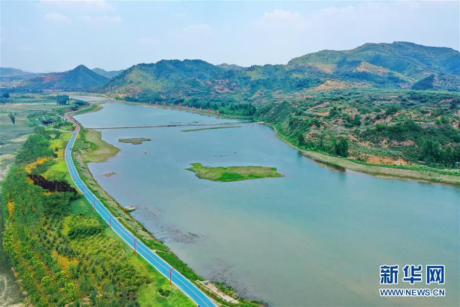 這是6月27日拍攝的遷西縣長(zhǎng)河帶狀公園景觀(無(wú)人機(jī)照片)。新華社記者牟宇攝
