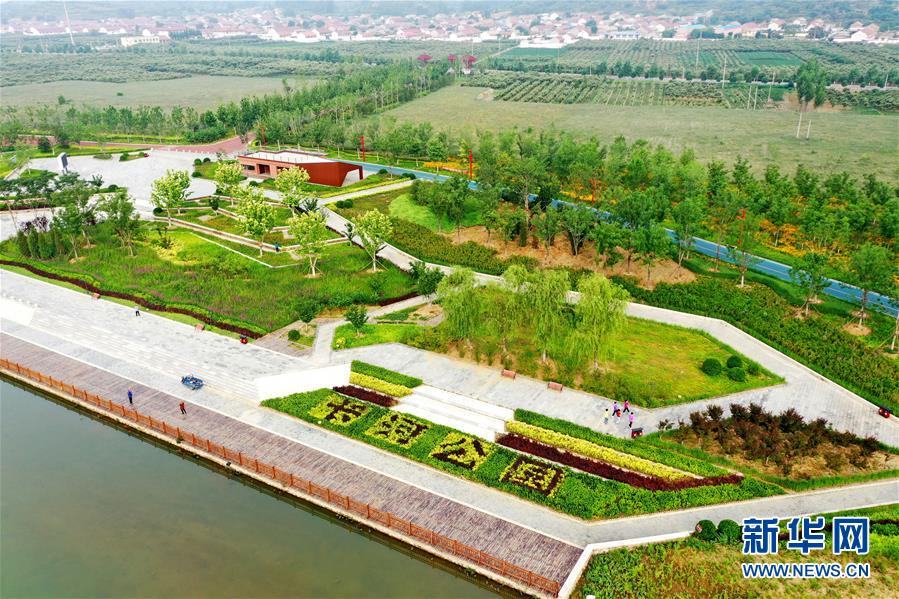 這是6月27日拍攝的遷西縣長(zhǎng)河帶狀公園景觀(無(wú)人機(jī)照片)。新華社記者牟宇攝