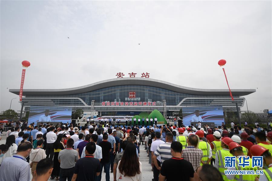 這是6月28日拍攝的商合杭高鐵浙江安吉站開(kāi)通儀式現(xiàn)場(chǎng)。新華社記者黃宗治攝