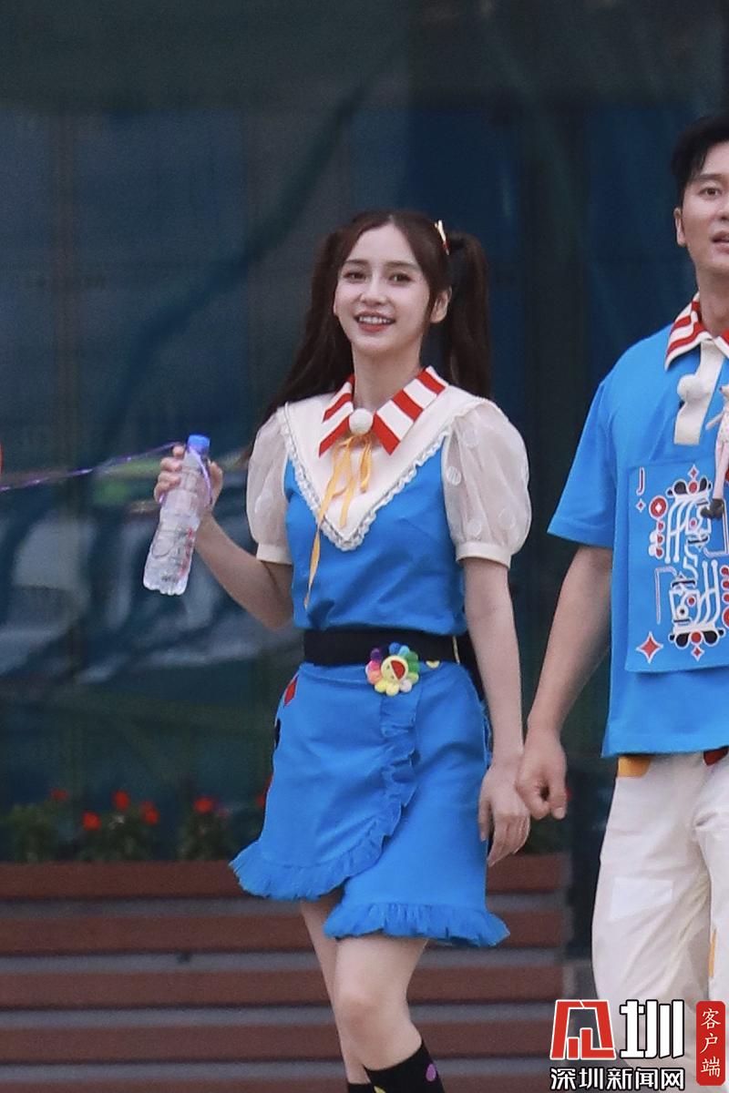 楊穎(angelababy)穿藍(lán)色背帶裙扎雙馬尾清新可愛(ài)