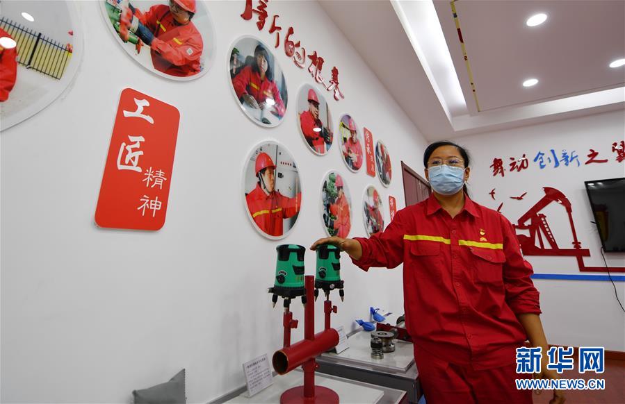 6月29日,馮萌萌在“馮萌萌勞模創(chuàng)新工作室”內(nèi)介紹情況。新華社記者李然攝